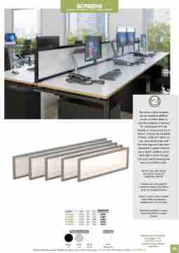 provide a degree of privacy for employees who are situated in close proximity to others. Frames are available in silver, white and black so you can synchronise with the desk legs and the semi- transparent glazed screens are a stylish addition which allow light to flow through the room whilst tackling the issue of ambient noise.