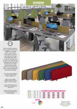 of fabric colour options. Vibe screens combine a slim profile with a robust and durable construction to improve the layout and function of any office and they are ideal for use with bench desking with the modern trend of having screens shorter than the desk length, with universal desk brackets that come as standard.