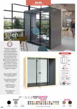 workers, thereby optimising their potential productivity and output. Silen 2 is a stylish interior space element that separates the high focus work area from its more relaxed cousins. A perfect fit for a focused work session for two but can fit up to four people with no hassle.