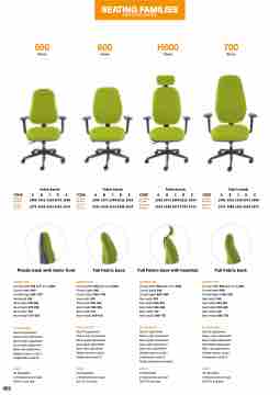 Heavy duty mechansim Back height adjustment Seat depth adjustment Back rake adjustment Weight tension control Independent seat tilt Height adjustable headrest