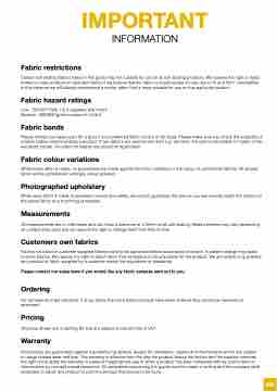 Certain soft seating fabrics listed in this guide may not suitable for use on all soft seating products. We reserve the right to reject orders to make products in selected fabrics if we believe that the fabric is inappropriate for use due to ‘fit and form’ unsuitability. In this instance we will always recommend a similar fabric that is more suitable for use on that particular product.