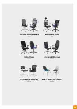 TRIPLE P PERFORMANCE PAGE 274 FABRIC TASK PAGE 296 CANTILEVER MEETING PAGE 318 MESH BACK TASK PAGE 280 LEATHER EXECUTIVE PAGE 306 MULTI-PURPOSE CHAIRS PAGE 326 269