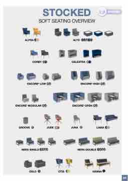 STOCKED SOFT SEATING OVERVIEW STOCKED ALPHA CORBY ENCORE2 LOW ENCORE2 MODULAR GROOVE JUDE NERA SINGLE ALTO CELESTRA ENCORE2 HIGH ENCORE2 OPEN JUNA LIANA NERA DOUBLE OSLO OTIS HANNA 437