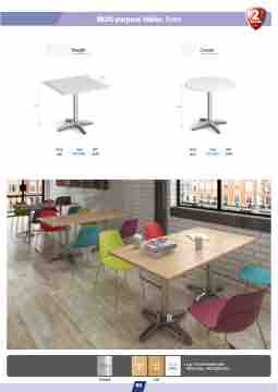 Multi-purpose tables: Roma Straight Circular 800 725 725 Width 800 Table RDS800 RRP £326 Width 800 Table RRP RDC800 £326 Chrome FRAME 95 TOP Beech (B) Oak White (O) (WH) » e.g. Chrome base with White top = RDC800-WH 2 YEARS