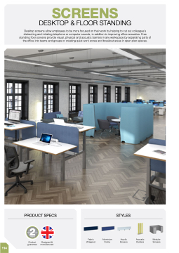 Desktop screens allow employees to be more focused on their work by helping to cut out colleague’s distracting and irritating telephone or computer sounds, in addition to improving office acoustics. Free standing floor screens provide visual, physical and acoustic barriers in any workspace by separating parts of the office into teams and groups or creating quiet work zones and breakout areas in open plan spaces.