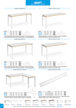 • Single straight desks 800mm deep with scalloped cut outs in the desktops • SDingle straight add-on unit desk with scalloped cut outs in the desktops