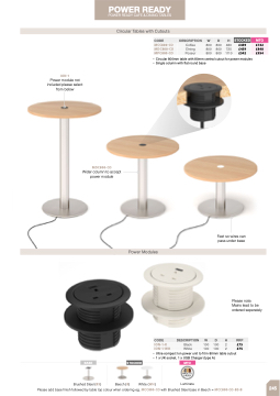 • Circular 800mm table with 80mm central cutout for power modules • Single column with flat round base