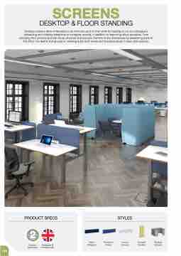Desktop screens allow employees to be more focused on their work by helping to cut out colleague’s distracting and irritating telephone or computer sounds, in addition to improving office acoustics. Free standing floor screens provide visual, physical and acoustic barriers in any workspace by separating parts of the office into teams and groups or creating quiet work zones and breakout areas in open plan spaces.