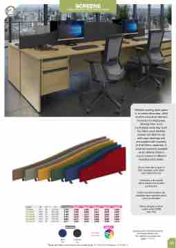 Whether dividing desk space or an entire office area, office screens provide an element of privacy for employees, allowing them to be comfortable while they work. Our fabric wave desktop screens are ideal for use with wave desktops and are supplied with brackets to fit all 25mm desktops. A universal bracket is available as an optional extra to mount screens to different manufacturer’s desks.