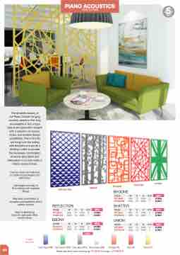 The simplistic beauty of the Piano Chords hanging acoustic panels is that they are available in five unique natural and geometric designs with a selection of colours, styles, and endless design possibilities. Piano Chords are hung from the ceiling with brackets and act as a dividing curtain to provide the necessary combination of sound absorption and attenuation to control noise in interior environments.