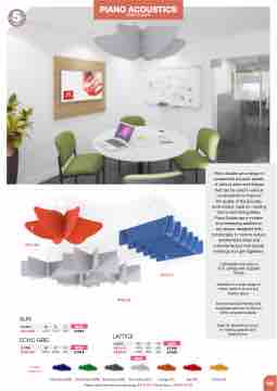 Piano Scales are a range of suspended acoustic panels of various sizes and shapes that can be used in various combinations to improve the quality of the acoustic environment. Ideal for meeting rooms and dining areas, Piano Scales are a modern and interesting addition to