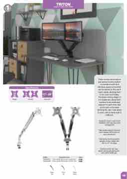 Triton monitor arms have a gas spring hovering system to provide smooth and effortless adjustments which can be tailored to the user’s exact needs, allowing them to sit more comfortably. The space-saving design of the double arm allows both monitors to be positioned adjacent to each other and at the back of the desk allowing the user more space to work, with a handy built-in USB port.