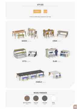 STYLES RECTANGULAR SQUARE Collection of tables shapes designed for each range SAXON PAGE 196 CREW PAGE 198 OTTO PAGE 202 SLAB PAGE 204 ENABLE PAGE 206 WOOD FINISHES Barcelona Walnut (BW) Grey Oak Onyx Grey White (GO) (OG) (WH) 193