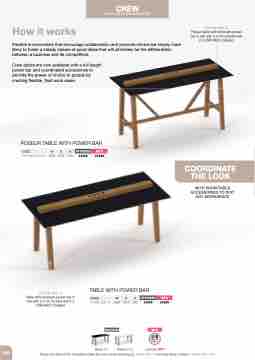 Crew tables are now available with a full length power bar and coordinated accessories to provide the power of choice to people by creating flexible, fluid work areas.