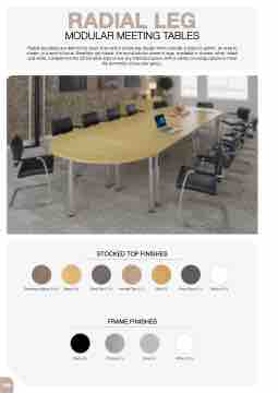 Radial leg tables are defined by clean lines and a simple leg design which provide a place to gather, an area to create, or a spot to focus. Simplistic yet robust, the round tubular screw in legs, available in chrome, silver, black and white, complement the 25mm table tops to suit any intended space, with a variety of configurations to meet the demands of any user group.