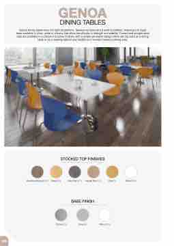Genoa dining tables have the right proportions, flawless surfaces and a solid foundation, featuring a trumpet base available in silver, white or chrome that offers the ultimate in strength and stability. Curved and straight table tops are available in a choice of 6 colour finishes, with a simple yet stylish design which can be used as a dining table or as a meeting table in any traditional or modern breakout dining area.
