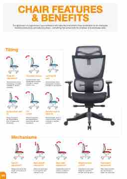 Seat and back move in a synchronised motion. Lockable in multiple positions.