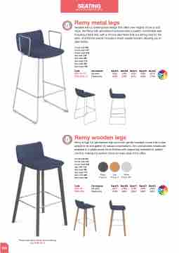 Remy is high full upholstered high stool with gentle moulded curves that invites people to sit and gather for casual conversations. Arm and armless models are available in multiple wood frame finishes with supporting footrests for added