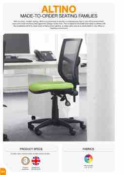 With its clean, modern styling, Altino is guaranteed to provide a contemporary feel to any office environment, due to the multi functions and ergonomic design of the chair. The sculptured moulded foam seat combines with the breathable slimline mesh back or fabric back options, to keep users cool and comfortable in any office or meeting environment.