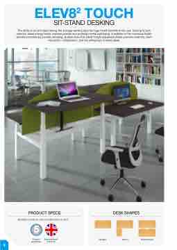 The ability to sit and stand during the average working day has huge health benefits to the user, helping to burn calories, boost energy levels, improve posture and promote mental well-being. In addition to the numerous health benefits provided by periodic standing, studies show that Elev82 height adjustable desks promote creativity, team interaction, collaboration, and the willingness to share ideas.