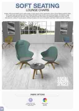 of fabrics and finishes can add style, colour and interest to any office space by creating a relaxed and unique, fully co- ordinated look, perfect for social spaces, working hot spots or for use in a reception area where visitors can rest in comfort.