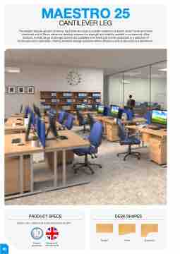The welded double upright cantilever leg frame structure is powder coated for a stylish under frame and when combined with a 25mm melamine desktop ensures the strength and stability needed in commercial office furniture. A wide range of storage options are available from fixed and mobile pedestals to a selection of bookcases and cupboards, offering sensible storage solutions where efficiency and productivity are paramount.