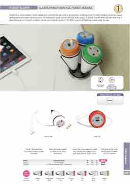 Cluster is a unique power module designed to provide the user with a conveniently locatable power or USB charging socket for casual seating areas and other working zones. An individual module can be securely fixed using the special bracket with optional cable tidy, or