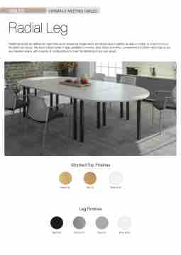 Radial leg tables are defined by clean lines and a simple leg design which provide a place to gather, an area to create, or a spot to focus. Simplistic yet robust, the round tubular screw in legs, available in chrome, silver, black and white, complement the 25mm table tops to suit any intended space, with a variety of configurations to meet the demands of any user group.