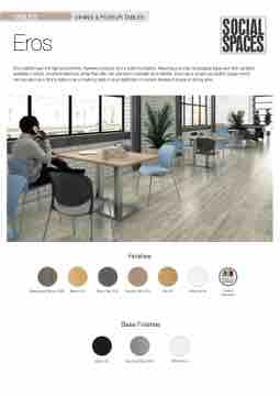 Eros tables have the right proportions, flawless surfaces and a solid foundation, featuring a sturdy, rectangular base and twin uprights available in black, brushed steel and white that offer the ultimate in strength and stability. Eros has a simple yet stylish design which can be used as a dining table or as a meeting table in any traditional or modern breakout space or dining area.