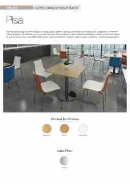 The Pisa tables range has been designed to bring people together, inspiring conversation and collaboration. Designed to complement virtually any décor, the polished chrome circular base and column supports a 25mm table top available in a variety of sizes and finishes, as well as dining, poseur and coffee table heights, making it perfect for canteens, cafes, lounges, receptions - anywhere people gather.