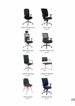 Triple P Performance page 256 Fabric Task page 260 Grandeur Heavy-Duty page 286 Cantilever Meeting page 304 Seating Families page 332 Mesh Back Task page 272 Leather Executive page 290 Multi-purpose page 312 251