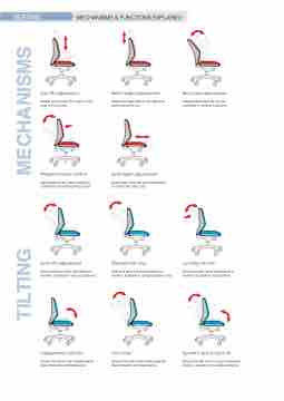 Seat and back move in a synchronised motion. Lockable in multiple positions.