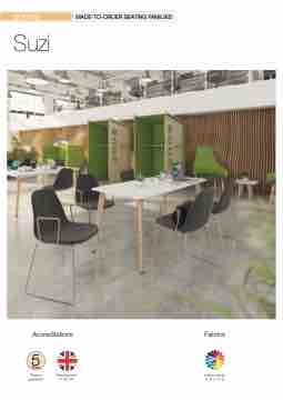 SEATING MADE-TO-ORDER SEATING FAMILIES Suzi Accreditations BS 45 Fabrics MADE TO ORDER Fabric bands A, B, C, D, E Years Years 9 10 Years Years 100 Lifetime Warranty Product guarantee Manufactured in the UK BS 2345 %