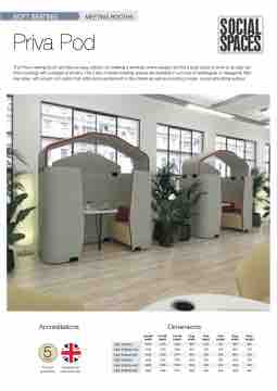 The Priva meeting booth provides an easy solution for creating a workbay where people can find a quiet place to work or groups can hold meetings with a degree of privacy. The 2 and 4 seater meeting spaces are available in a choice of rectangular or hexagonal high- rise sides, with a bent roof option that adds some excitement to the interior as well as providing a large, sound-absorbing surface.