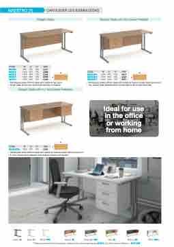 • Rectangular desks 600mm deep with cantilever frame & single cable access port • 2 x two drawer fixed pedestals with shallow drawers and handles