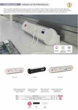 establishments to clamp on to the back of tables and desks and is available in black and white with circular socket apertures.