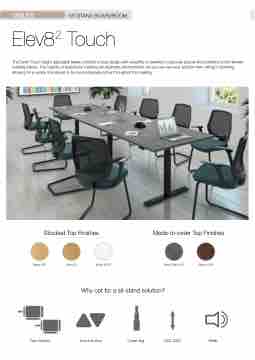 The Elev82 Touch height adjustable tables combine unique design with versatility to transform corporate spaces like boardrooms into flexible meeting places. The majority of boardroom meeting are sedentary environments, so you can vary your position from sitting to standing allowing for a variety of postures to be more physically active throughout the meeting.