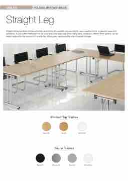 Straight folding leg tables combine simplistic good looks with versatility and are ideal for use in meeting rooms, conference suites and exhibitions. A click button mechanism on the underside of the table means the folding frame, available in different finish options, can be folded neatly within the footprint of the table top, offering easy manoeuvrability and convenient storage.