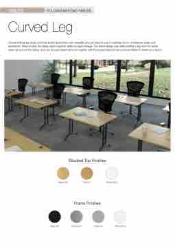 Curved folding leg tables combine stylish good looks with versatility and are ideal for use in meeting rooms, conference suites and exhibitions. When folded, the tables stack together neatly for easy storage. The frame design also offers sufficient leg room for users when sat around the tables, and can be used stand-alone or together with the trapezoidal and semi-circular tables to create your layout.