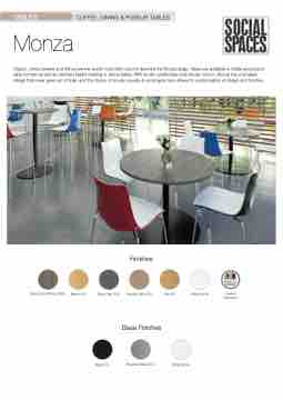 Classic, contemporary and refined are the words most often used to describe the Monza range. Tables are available in coffee and poseur table formats as well as standard height meeting or dining tables. With its slim profile base and tubular column, Monza has a timeless design that never goes out of style, and the choice of circular, square or rectangular tops allows for customisation of design and function.