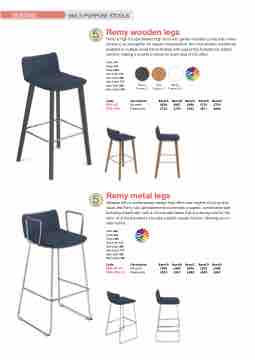 Remy is high full upholstered high stool with gentle moulded curves that invites people to sit and gather for casual conversations. Arm and armless models are available in multiple wood frame finishes with supporting footrests for added