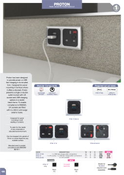 Proton has been designed to provide power or USB fast charging in its simplest form. Designed for panel mounting in furniture where it offers a discreet, Proton presents a single or double outlet module with UK socket and USB charging options in a stylish black frame. To enable compliance to BS6396, UK sockets are fitted with 5 x 20mm anti-surge ceramic fuses.