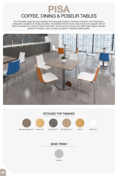 The Pisa tables range has been designed to bring people together, inspiring conversation and collaboration. Designed to complement virtually any décor, the polished chrome circular base and column supports a 25mm table top available in a variety of sizes and finishes, as well as dining, poseur and coffee table heights, making it perfect for canteens, cafes, lounges, receptions - anywhere people gather.