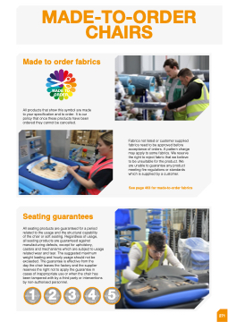 All seating products are guaranteed for a period related to the usage and the structural capability of the chair or soft seating. Regardless of usage, all seating products are guaranteed against manufacturing defects, except for upholstery,
