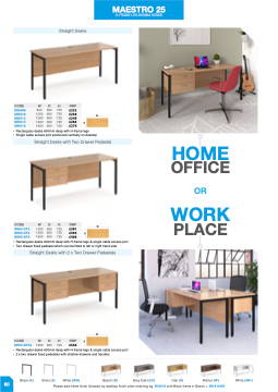 • Rectangular desks 600mm deep with H-frame legs & single cable access port • 2 x two drawer fixed pedestals with shallow drawers and handles