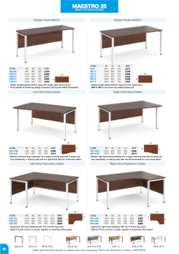 • Ergonomic left hand desktops with full H-Frame leg return • Ergonomic right hand desktops with full H-Frame leg return