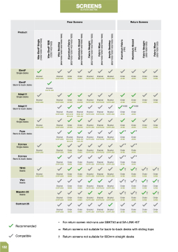∞ Return screens not suitable for back-to-back desks with sliding tops ✓ Compatible screen † Return screens not suitable for 600mm straight desks