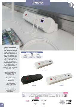 Chroma power modules offers power when you need it via its selection of smart charge and power socket ports which allows the user to connect various devices quickly and efficiently. The stylish Chroma power module is designed for use in office and educational establishments to clamp on to the back of tables and desks and is available in black and white with circular socket apertures.