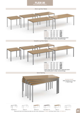 • 800mm deep tables with silver frame supplied flat packed • Spiral stacking option for easy, convenient storage