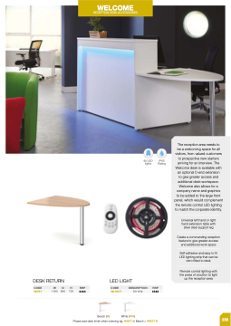 additional desk workspace. Welcome also allows for a company name and graphics to be added to the large front panel, which would complement the remote control LED lighting to match the corporate identity.